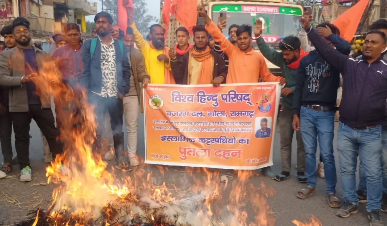 झारखंड में बजरंग दल और विश्व हिंदू परिषद ने बांग्लादेश के खिलाफ विरोध प्रदर्शन किया
