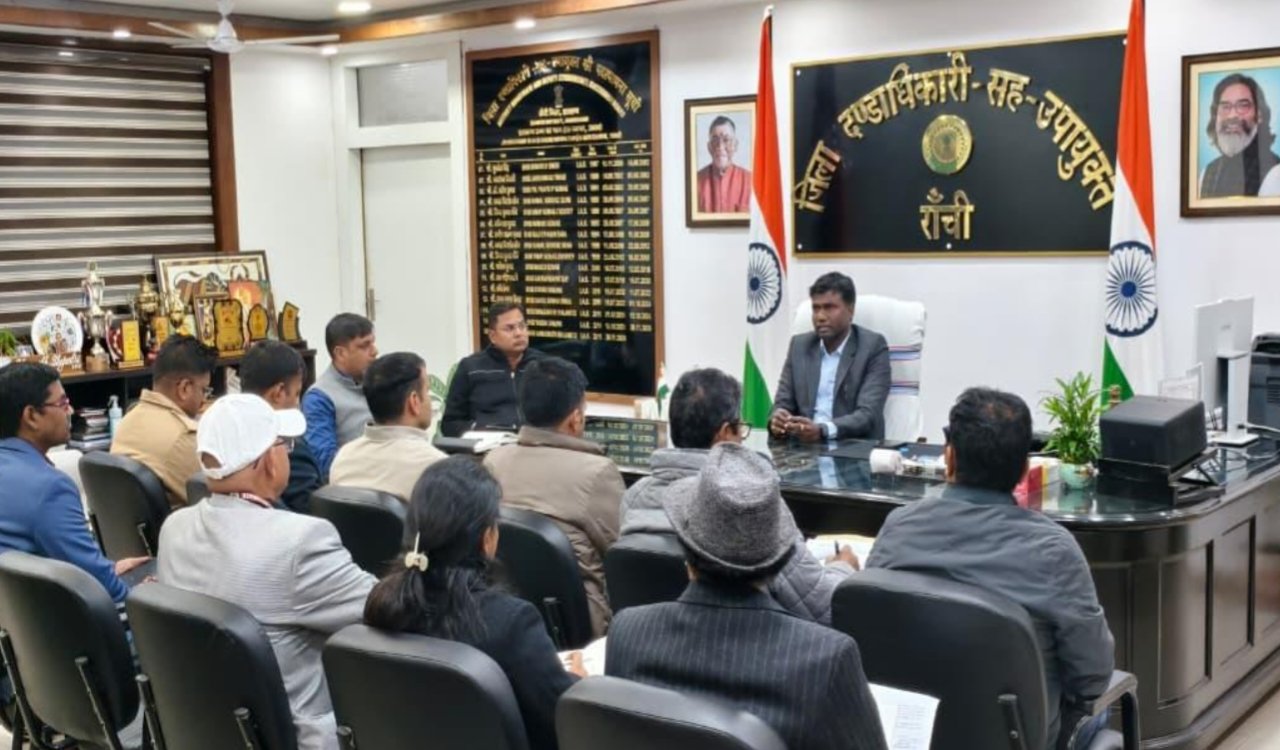 रांची में उपायुक्त-सह-जिला दंडाधिकारी मंजूनाथ भजन्त्री की अध्यक्षता में एक महत्वपूर्ण बैठक का आयोजन किया गया। इस बैठक का मुख्य उद्देश्य राष्ट्रपति द्रौपदी मुर्मु के प्रस्तावित रांची दौरे एवं 30 दिसंबर 2025 को मोरहाबादी मैदान में होने वाली Combined Graduate Level (CGL) परीक्षा के सफल अभ्यर्थियों को नियुक्ति पत्र वितरण कार्यक्रम की तैयारियों की समीक्षा करना था।